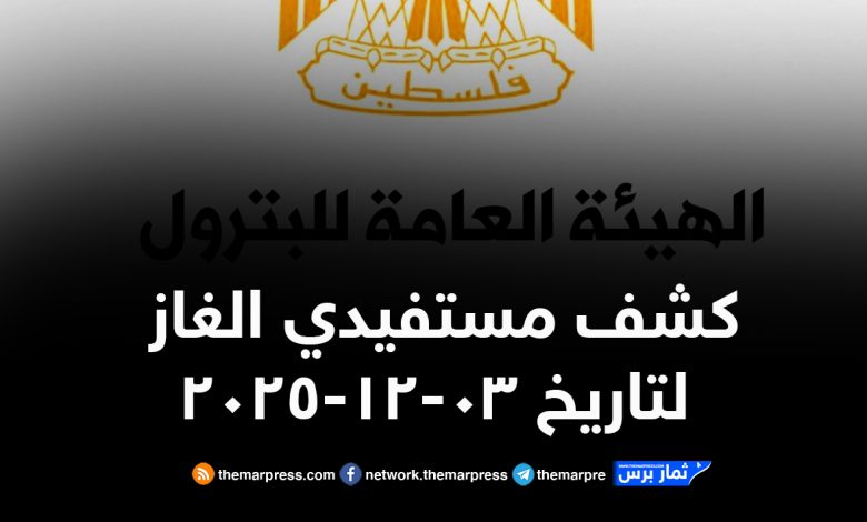 تفاصيل كشف مستفيدي الغاز بتاريخ 03-12-2025