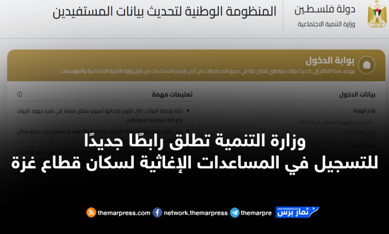 يهدف هذا النظام إلى تحديث بيانات مواطني قطاع غزة في جميع المحافظات، من أجل تقديم المساعدات من قبل وزارة التنمية الاجتماعية والمؤسسات.