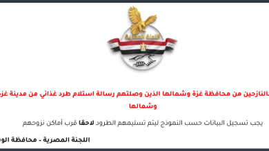 اللجنة المصرية – رابط تسجيل نازحي شمال غزة المتبقيين في محافظات الجنوب