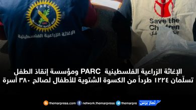 الإغاثة الزراعية الفلسطينية PARC ومؤسسة إنقاذ الطفل تسلّمان 1224 طرداً من الكسوة الشتوية للأطفال لصالح 380 أسرة
