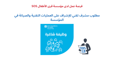 فرصة عمل: مشرف تقني للأعمال التقنية والصيانة – مؤسسة قرى الأطفال SOS