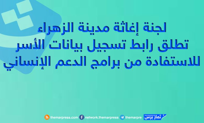 ودعت لجنة إغاثة مدينة الزهراء جميع الأسر التي تنطبق عليها شروط الاستفادة إلى المسارعة في تسجيل بياناتها وعدم التأخر، مشيرة إلى أن التأخير في التسجيل قد يؤدي إلى تأخر وصول المساعدات أو عدم إدراج الأسرة ضمن قوائم المستفيدين.